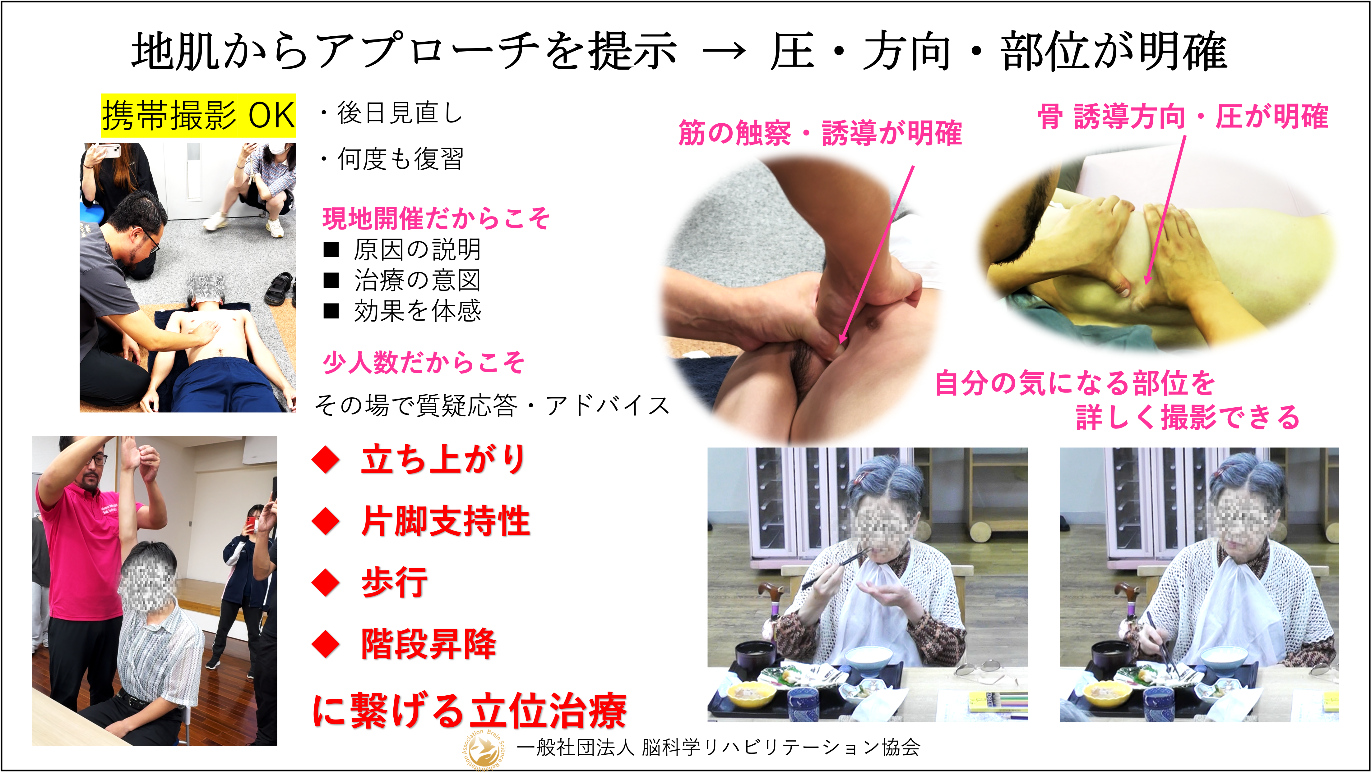 リハビリ資格だからこそ「治せる知識・技術」を身につける実技講座になります。